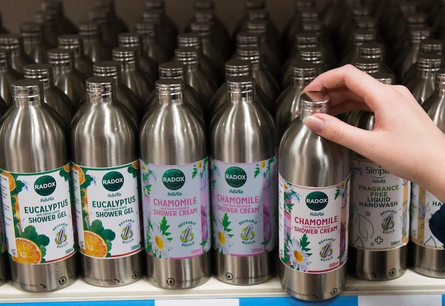 Customers can find these products in our stainless steel bottles, sold in ASDA and Co-op stores across the UK: Co-op Media City, Co-op Codsall, Co-op Marsh, ASDA Leyton, ASDA Middleton, ASDA Milton Keynes, ASDA York, ASDA Toryglen and ASDA Thurmaston. At purchase, customers pay a £2 deposit for the packaging and get it back as a coupon to use for their next purchase when returning.
